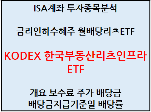 오늘은 간단하게 KODEX 한국부동산리츠인프라 ETF에 대해 리뷰해 보았습니다. 5천원 정도이니, 부담없이 사모아 볼까 생각중입니다.